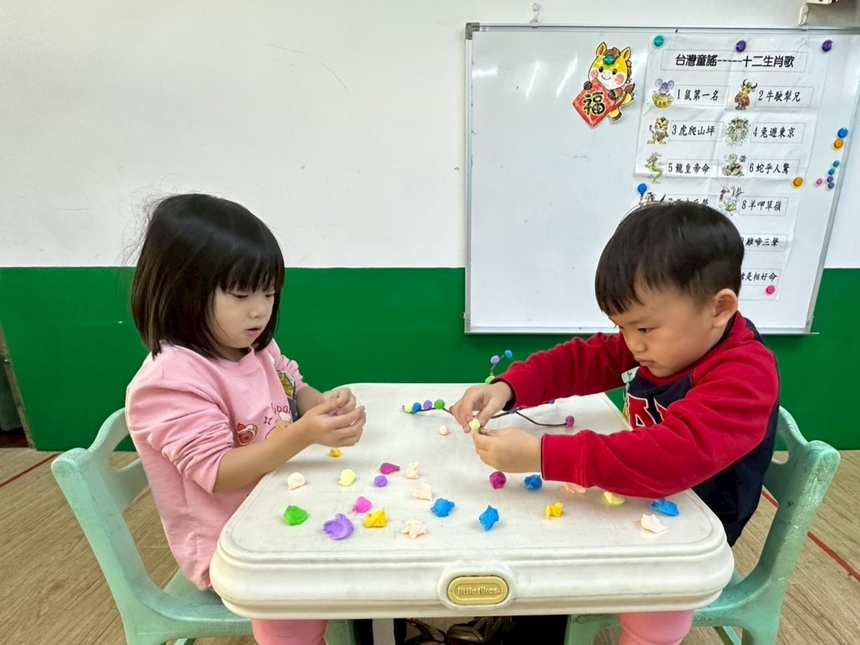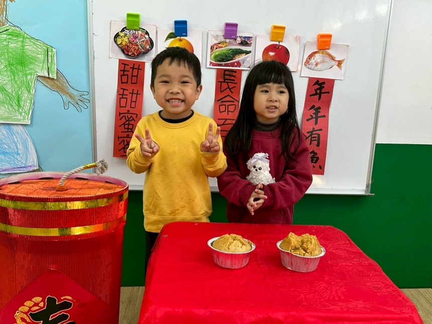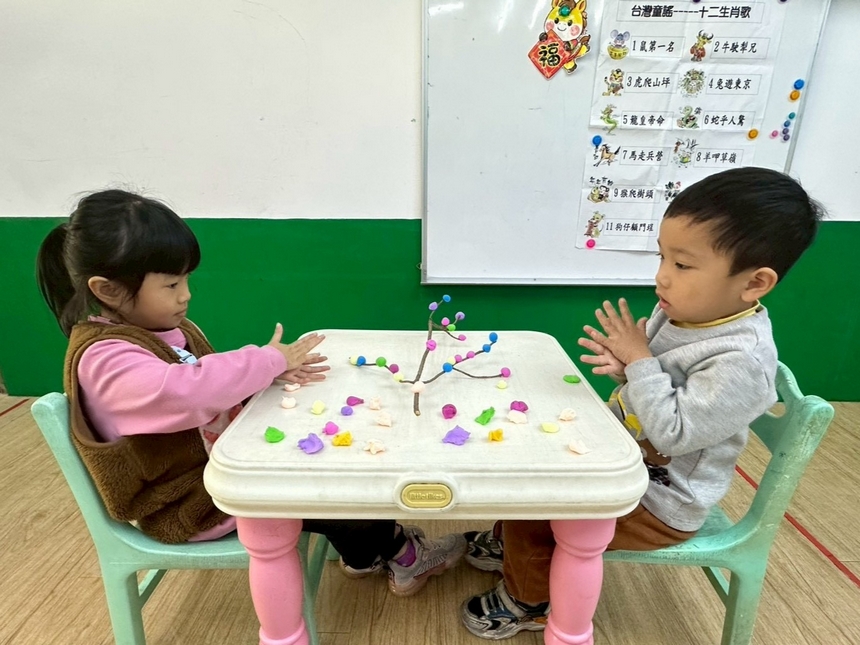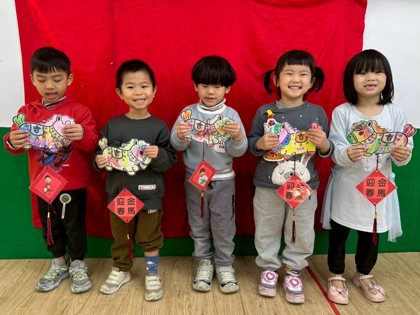 春節是幼兒生活中熟悉且充滿期待的重要節慶,老師帶領幼兒認識春節的由來與習俗,感受過年的熱鬧氛圍。活動中,幼兒親手製作新年吊飾,運用色彩與素材表達對新年的想像與祝福,並在師生共同合作下,將作品融入教室春節情境佈置,營造溫馨喜氣的學習環境。