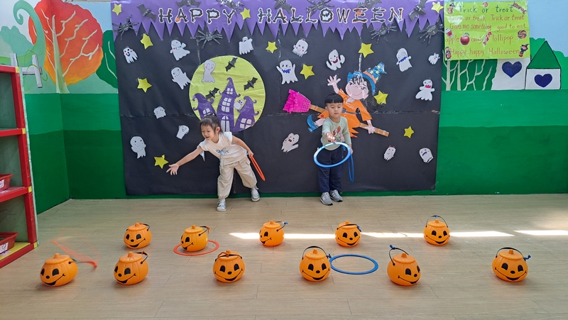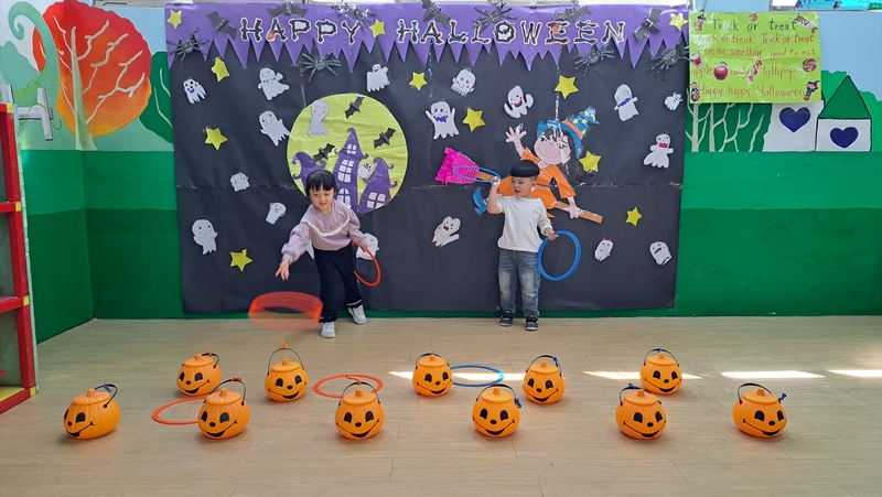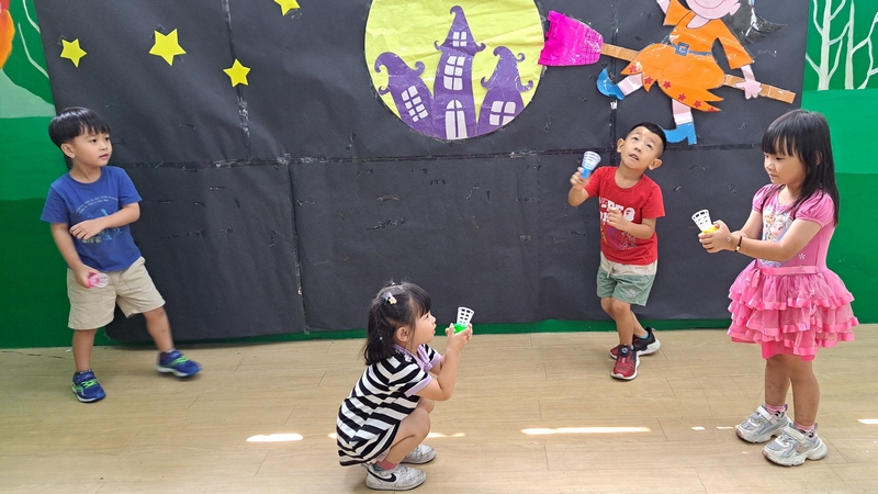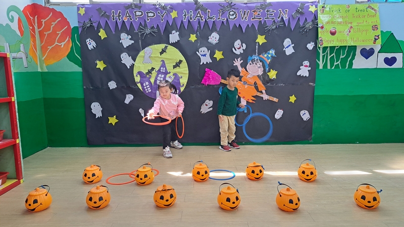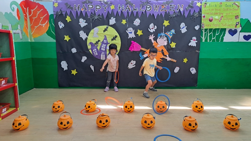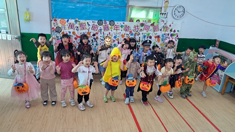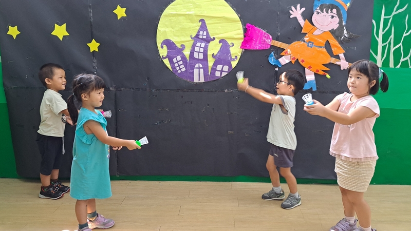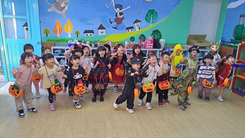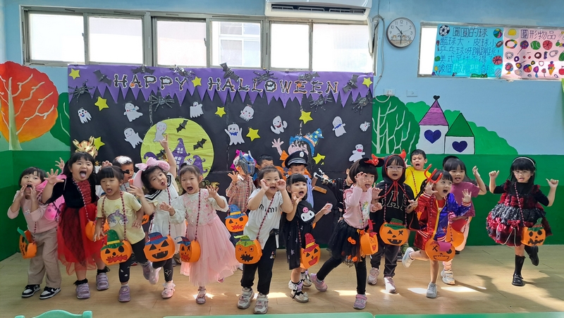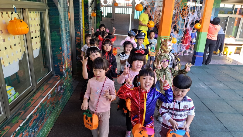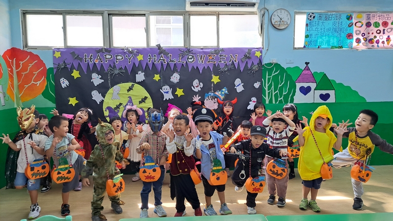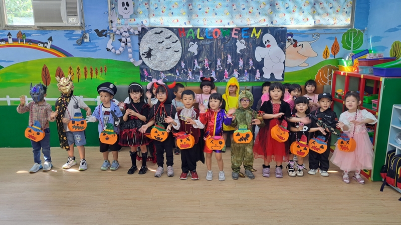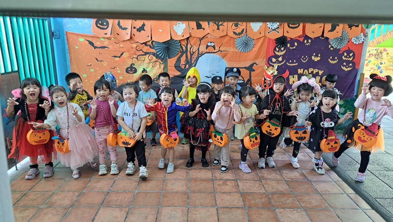 萬聖節當天,學校舉行「不給糖就搗蛋」活動,讓幼兒到各班表演,體驗萬聖節快樂的氣氛。