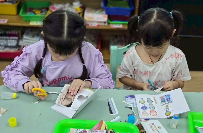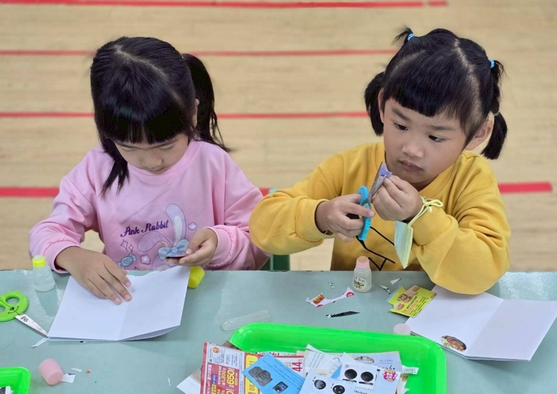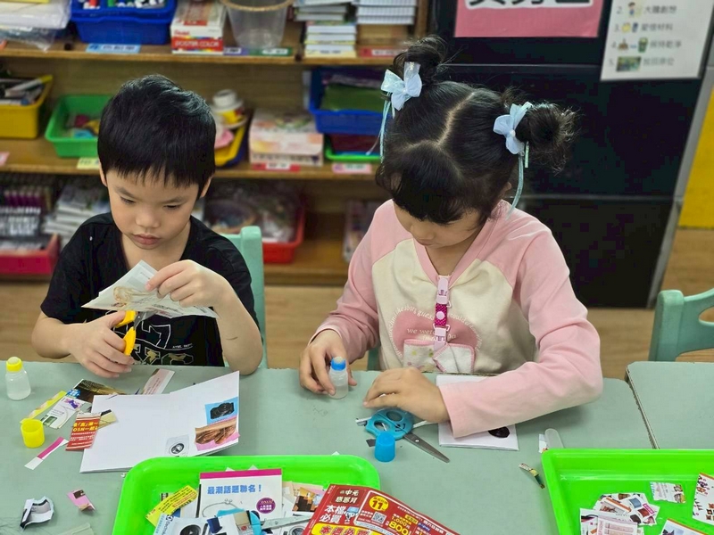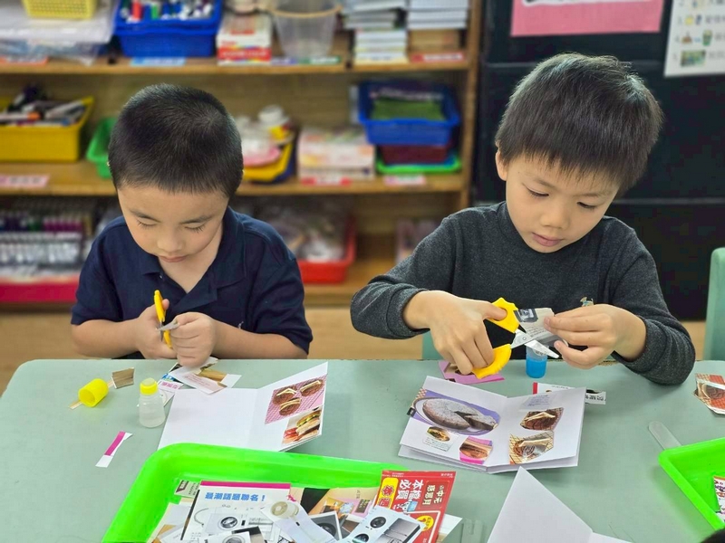 圓形小書紀錄本活動,是讓小朋友準備了商品的廣告單或商品的目錄,讓小朋友用剪刀剪下圓形的相關圖片,包括用的、吃的等,再貼在小書上,再畫上封面小書就完成了!這活動配合主題外,也讓小朋友知道一本書的製作也是不容易的,要珍惜好好愛護書本!