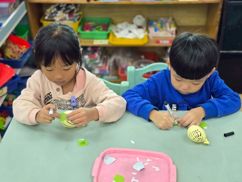 河豚共創活動是一項充滿趣味的主題活動,讓小朋友認識河豚的多樣種類,並了解它在未生氣和生氣時的變化。活動中,藉由氣球、醋和蘇打粉之間的化學反應,製作出有趣且栩栩如生的小河豚。當小朋友用力一敲,氣球膨脹,瞬間變成一隻可愛的小河豚,每個人都驚喜不已,笑聲不斷。他們迫不及待地想要把這份樂趣和家人分享,那種開心的心情展露無遺,小河豚的魅力實在無法抵擋!